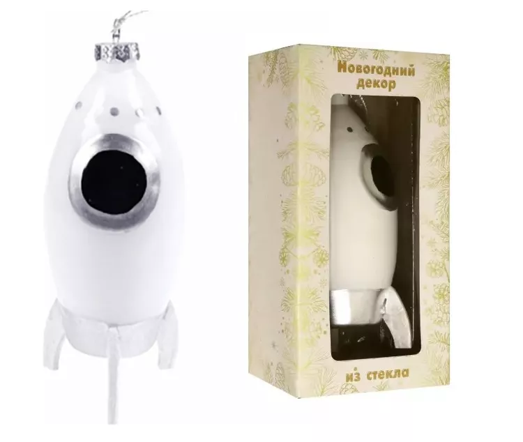 Елочное украшение "Космическая ракета" 9см, цв.белый