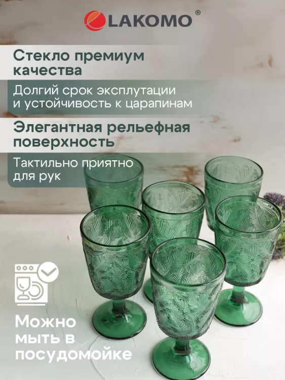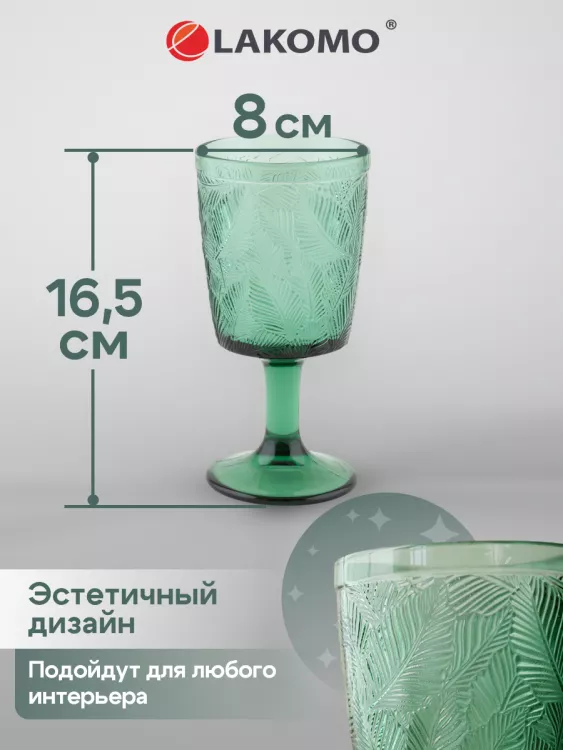 Набор из шести бокалов объемом 285 мл станет отличным выбором для любителей вина и ценителей стильной посуды. Изготовленные из цветного зеленого стекла, эти фужеры привносят изысканность и элегантность в любой интерьер кухни, бара, дома, кафе или ресторан...