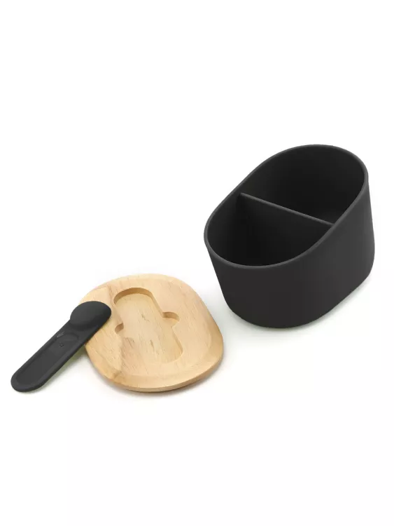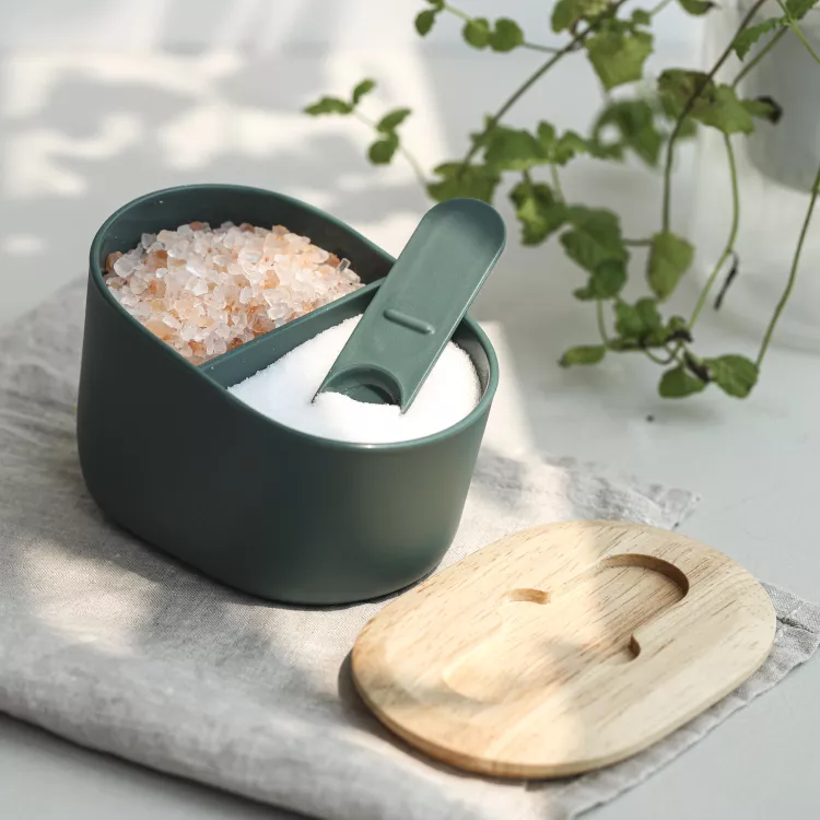 Емкость для хранения соли/специй с ложкой 330мл, 12х8х8,3см, цв.черный