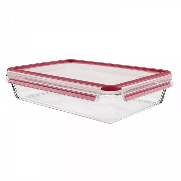 "EMSA" CLIP&CLOSE GLASS" Контейнер стекло прям. 0,45л, цв.малиновый