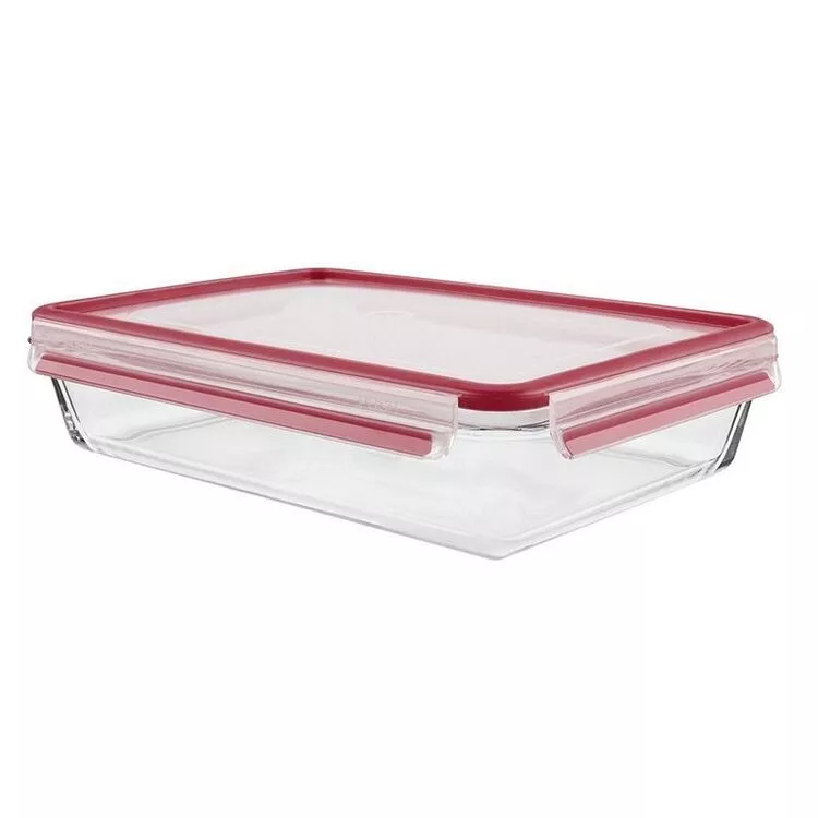 "EMSA" CLIP&CLOSE GLASS" Контейнер стекло прям. 1,3л, цв. малиновый