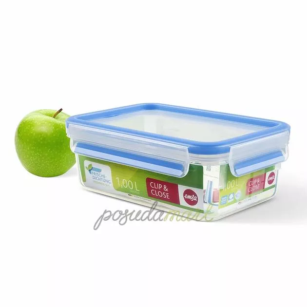"EMSA" CLIP&CLOSE" Контейнер пластик 1л прям., цв. синий