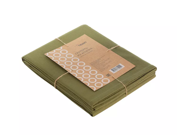 Скатерть из хлопка оливкового цвета из коллекции Essential станет центральным элементом сервировки стола. Модель выполнена из прочного, экологически чистого хлопка. Износостойкий материал не деформируется после множества стирок. Однотонное изделие органич...