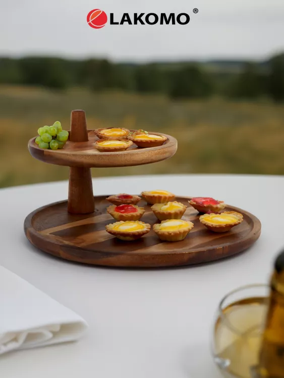 Этажерка из акации - это стильная и функциональная подставка, идеально подходящая для сервировки фруктов, конфет и закусок. Деревянная конструкция и 2-х ярусная каскадная форма придают ей элегантный вид, который впишется в любой интерьер, будь то дом, каф...