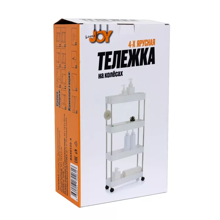Этажерка на колесиках 85х13,5х40см, 4 полки, цв.белый
