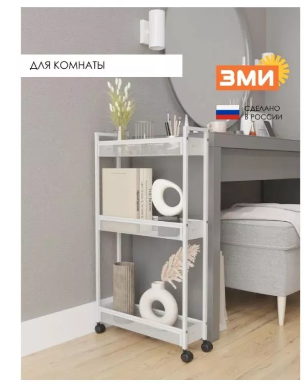 Этажерка на колесиках "Вишера 13" 44,6х13,1х79,2см, 3 полки, цв.белый