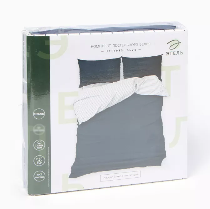 "Этель" Комплект постельного белья "Stripes" 2сп, цв.синий 50х70см, перкаль