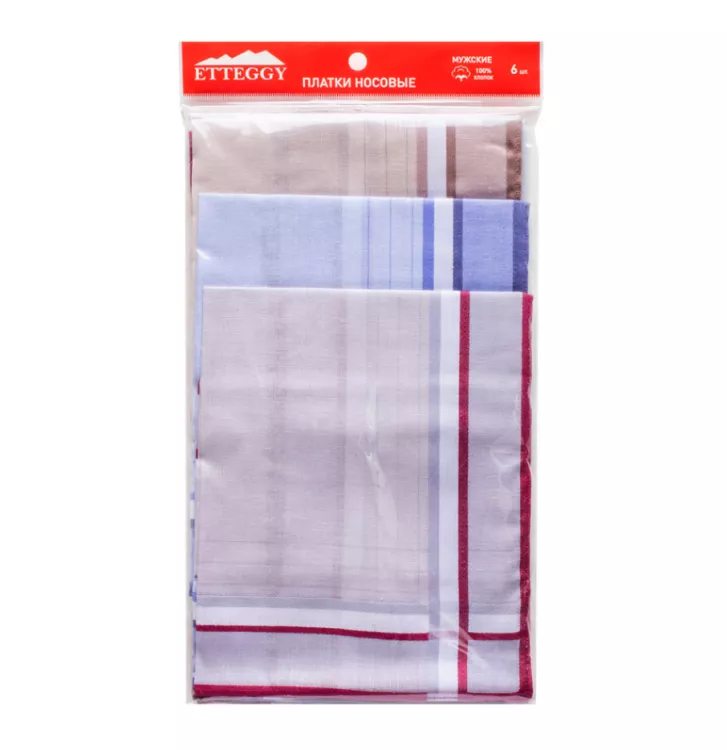 "Etteggy" Набор мужских носовых платков 6шт, 40х40см