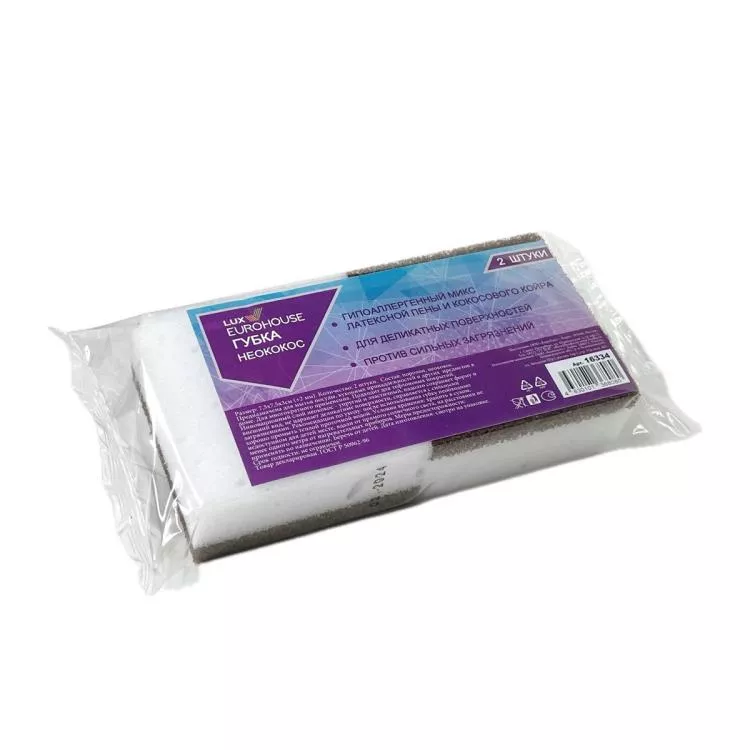 "EuroHouse" Набор губок для посуды "НеоКокос" 2шт, 7,5х7,5х3см