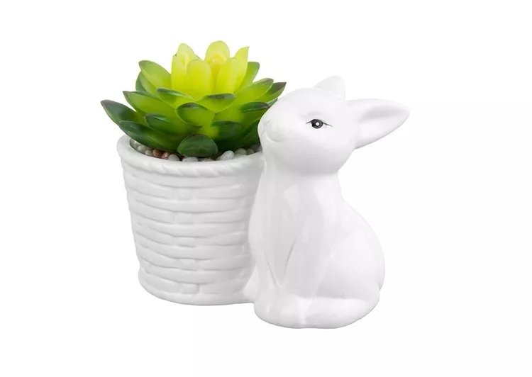 Фигурка-кашпо "Зайчик с цветком" 11х10см
