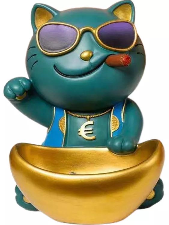 Фигурка "Кот - Диджей" с емкостью для мелочей 21х19х28см, цв.зеленый
