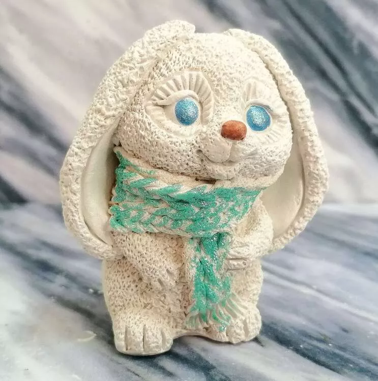 Фигурка "Кролик в шарфе" 7х7х6см цв.перламутр