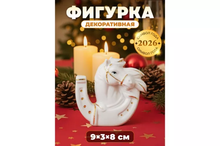 Фигурка "Лошадь и подкова" 9см, цв.белый