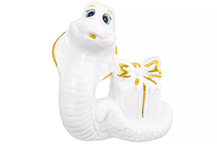 Фигурка "Змея с подарком" 7х4х8см, цв.белый