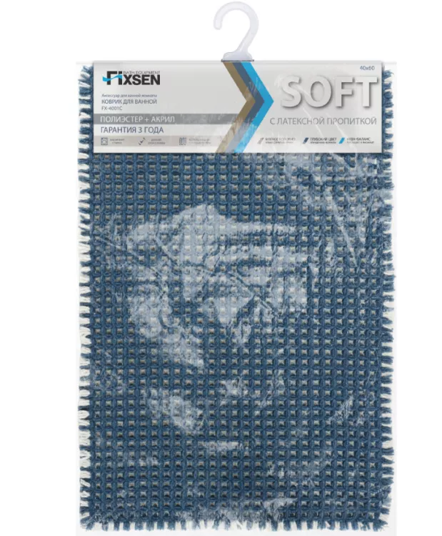 "Fixsen" Коврик для ванной "Soft" 40х60см, цв.синий