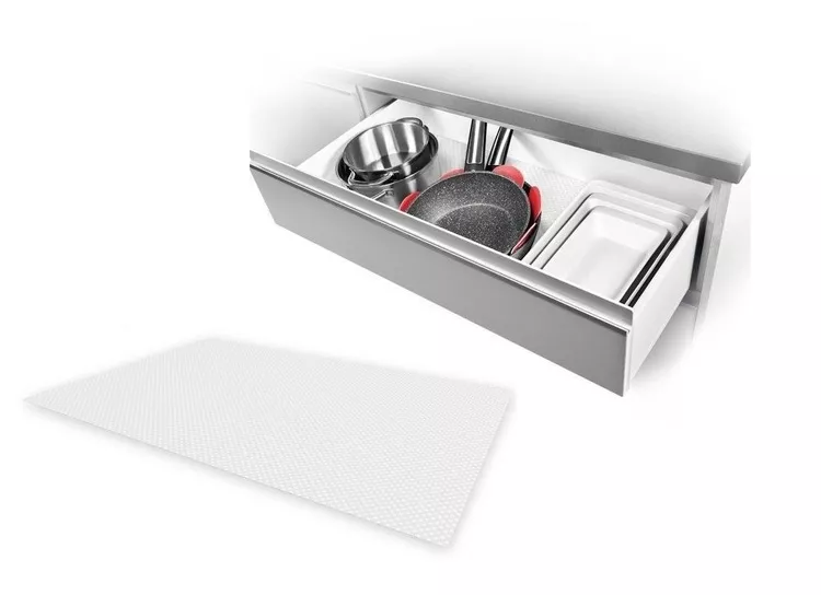 лагодаря специальной поверхности, коврик надежно фиксируется на полке или в ящике, предотвращая скольжение предметов даже при движении. Это обеспечивает сохранность вашего инвентаря и предотвращает случайные повреждения или потери.