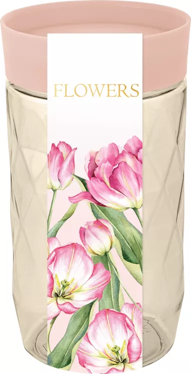 "Flowers" Банка для сыпучих продуктов 1л, цв.розовая пудра