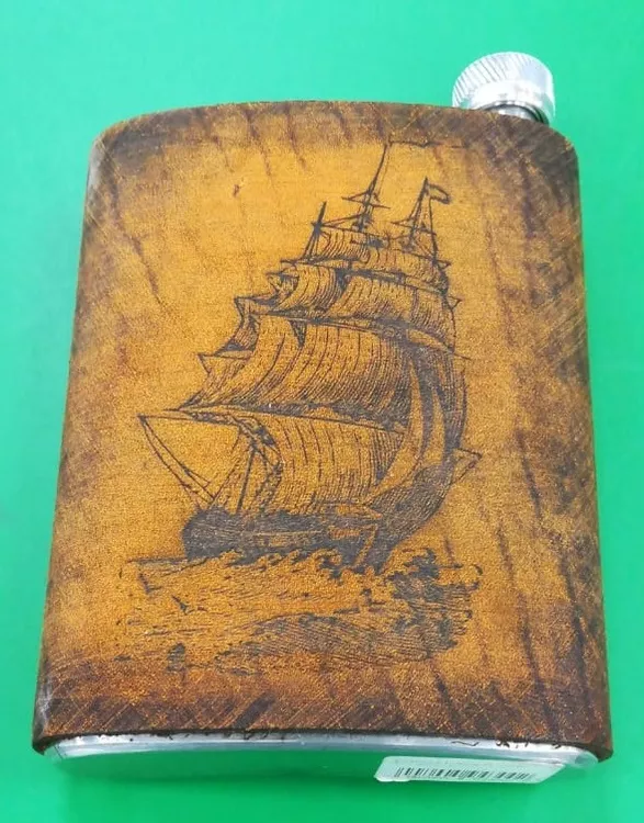 Фляжка "Корабль" в кожанном чехле 0,25л