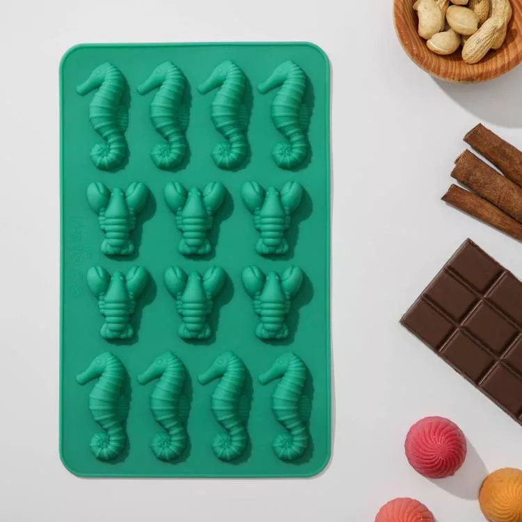 Форма для мармелада "Морской мир" 22,2х14,2х1см, 14 ячеек, цв.ассорт