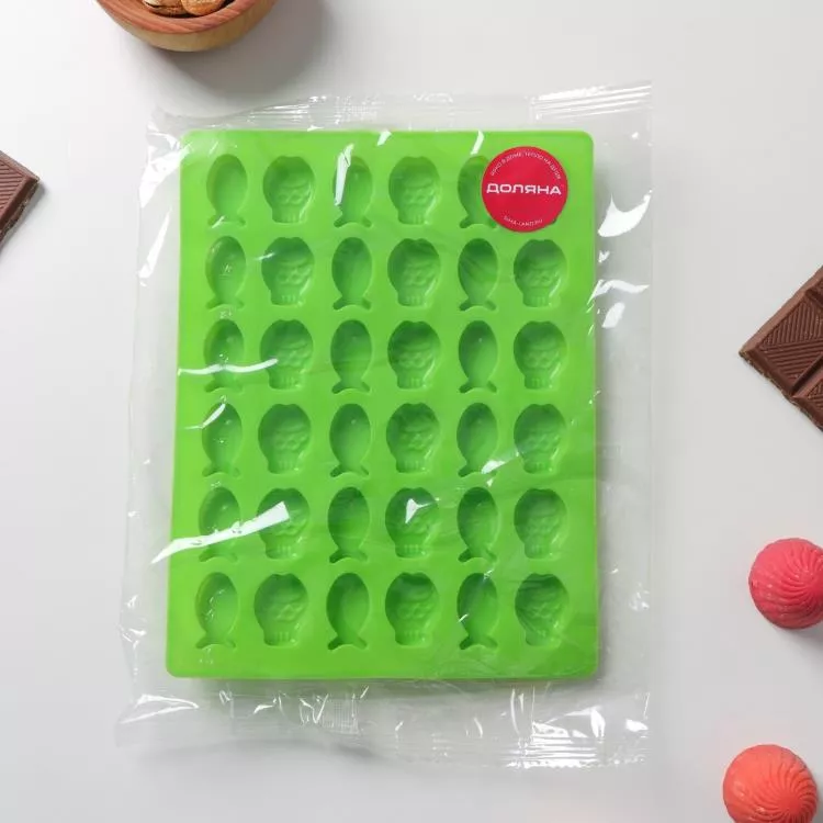 Форма для мармелада "Рыбки" 18,5х14х1см, 36 ячеек, цв.зеленый