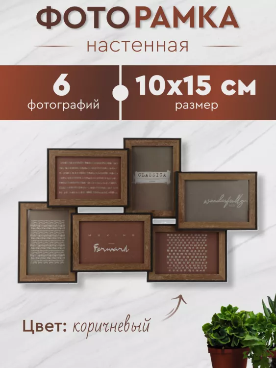 Фоторамка настенная "Classica Forward" на 6 фото 10х15см, цв.коричневый