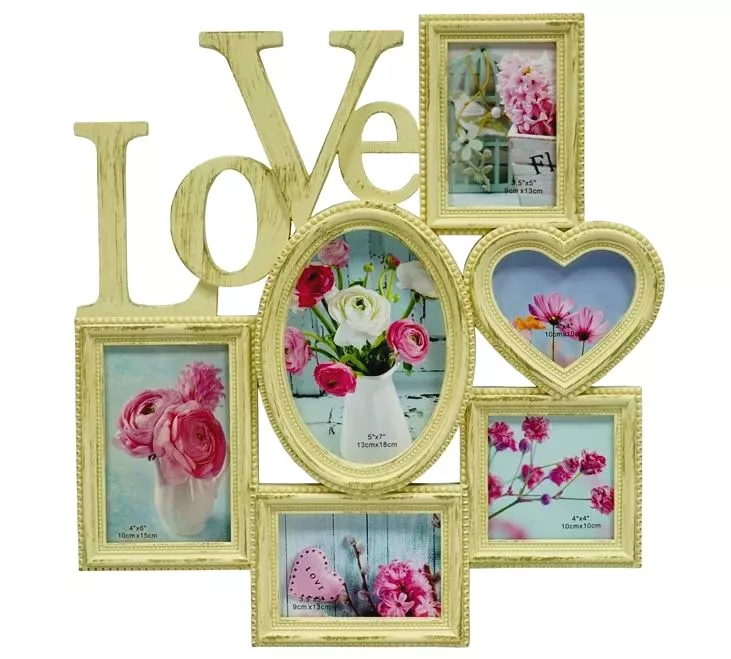 Фоторамка настенная "LOVE" на 6 фото кремовый