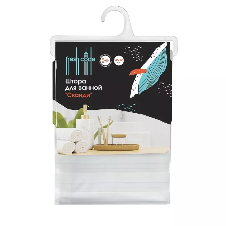 "Fresh Code" Штора для ванной "Сканди" 180х180см, цв.белый