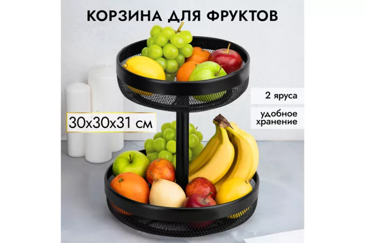 Фруктовница "Черная" 2 яруса 30х30х31см