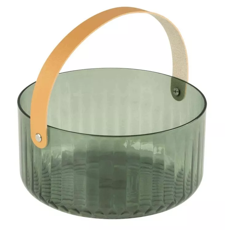 Стильная и многофункциональная фруктовница. Может быть использована, как ваза или емкость для льда. Снабжена стильной ручкой из натуральной кожи для удобства переноски.