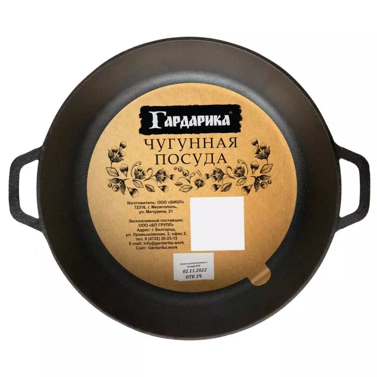 "Гардарика" Жаровня чугунная 40см с двумя ручками, без крышки 1834