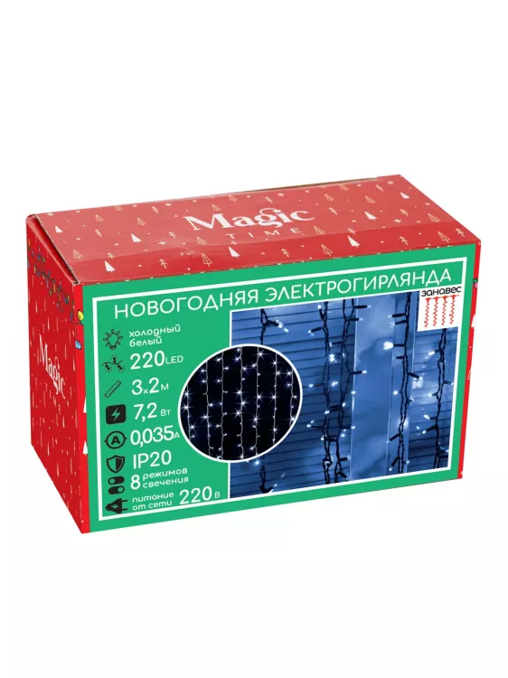 Гирлянда электрическая "Дождик" 3х2м, 220 LED ламп, цв.холодный белый