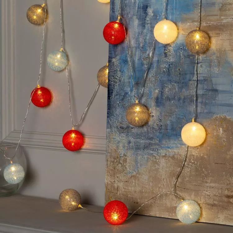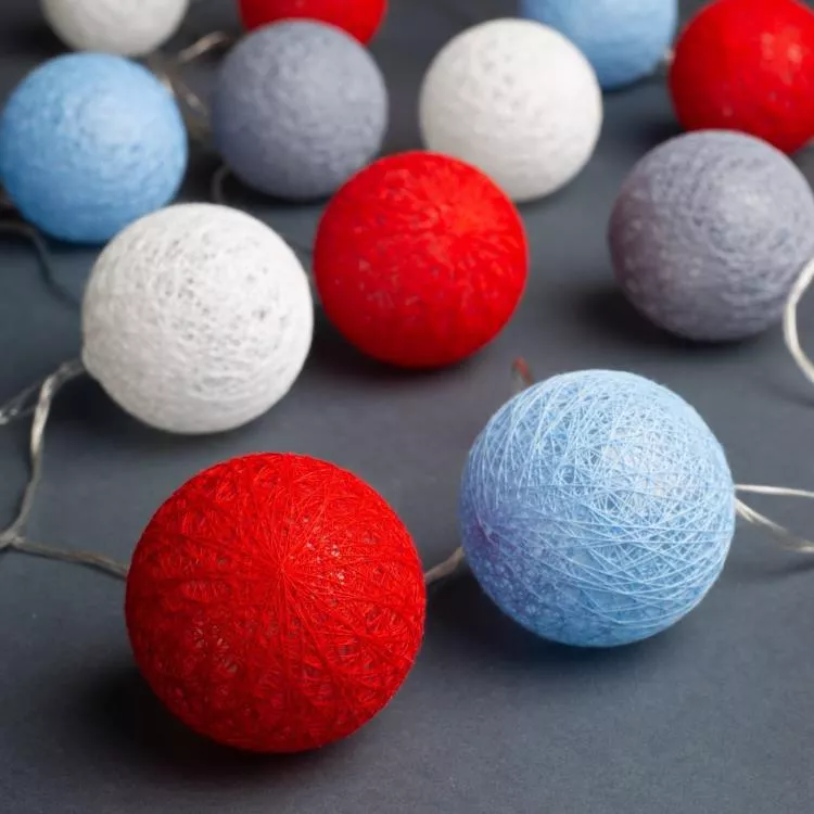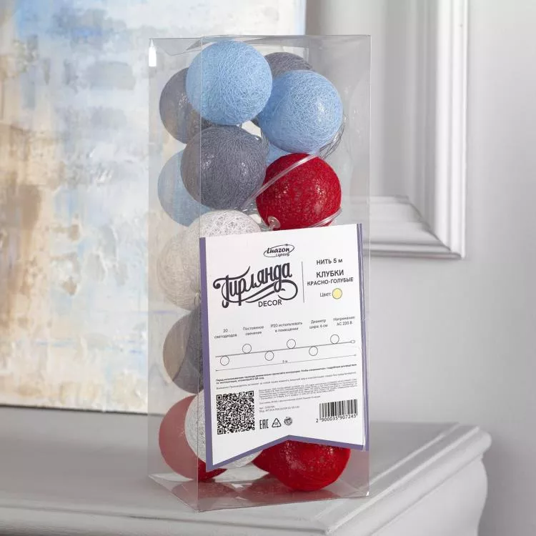 Гирлянда электрическая "Нить" 5м с насадками "Клубки красно-голубые", цв.белый теплый