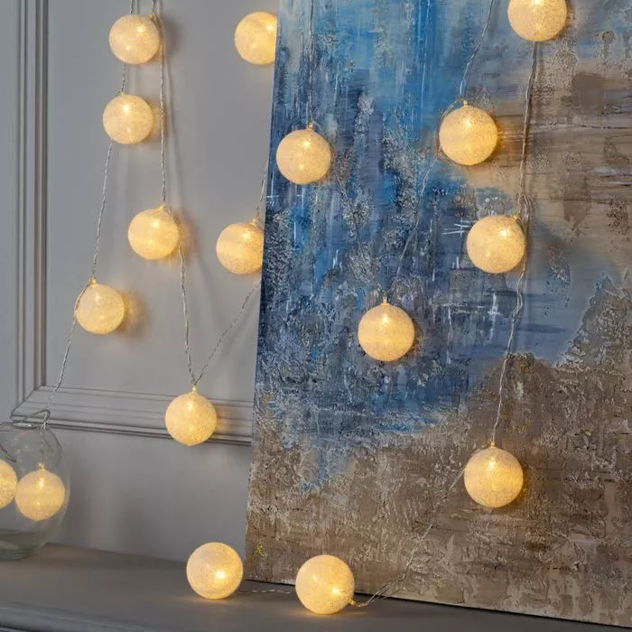 Гирлянда «Нить» 5 м с насадками «Клубки белоснежные», IP20, прозрачная нить, 20 LED, свечение тёплое белое, 220 В
