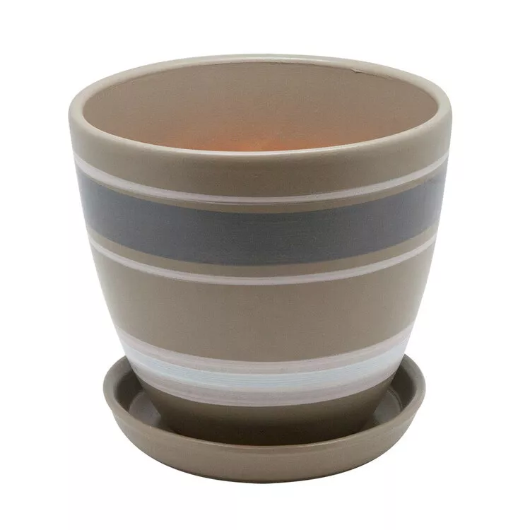 Горшок с поддоном d=17,5см h=16см 2,4л серый с белыми полосками