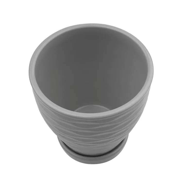 Горшок с поддоном "Эллипс" d=14,5см h=14,5см 1,3л серый