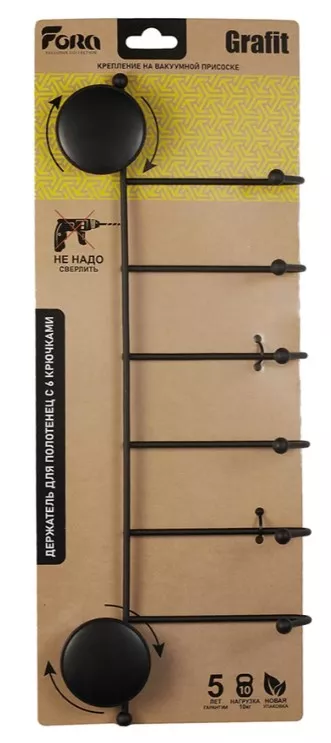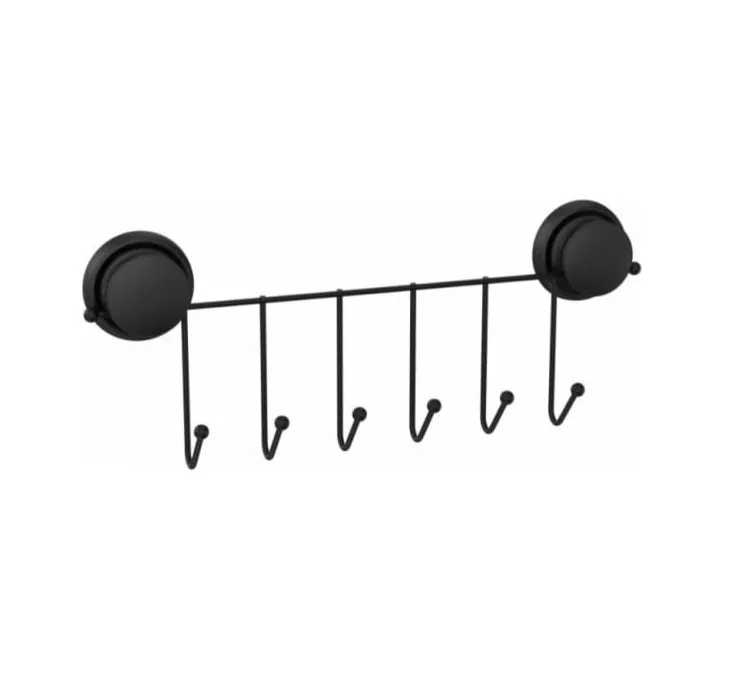 "GRAFIT" Держатель для полотенец на присоске, 6 крючков, 15,5х39х5см, цв.черный