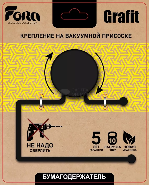 "GRAFIT" Держатель для туалетной бумаги на присоске 14х14х7см, цв.черный
