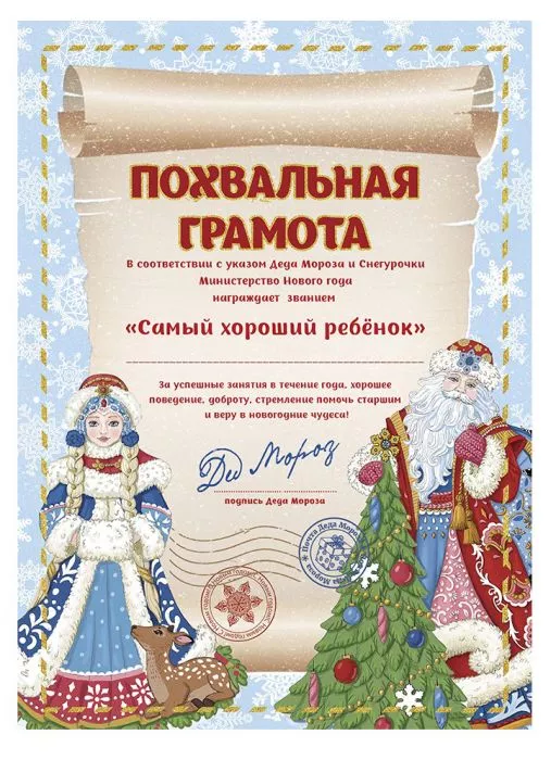 Грамота "Звание от Деда Мороза" 29,5х21см