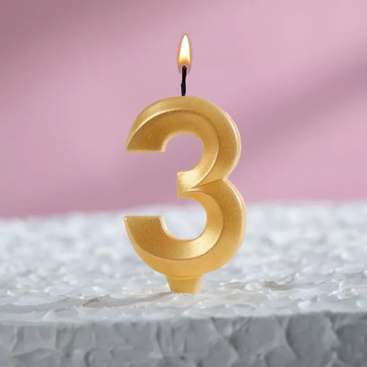 "Грань" Свечи для торта "Цифра 3", цв.золотой