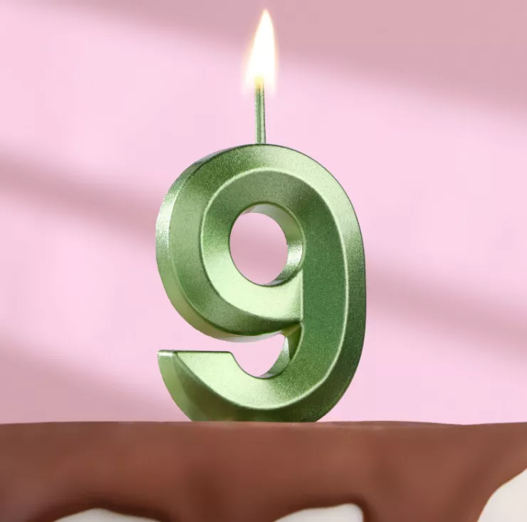 "Грань" Свечи для торта "Цифра 9", цв.изумруд