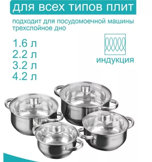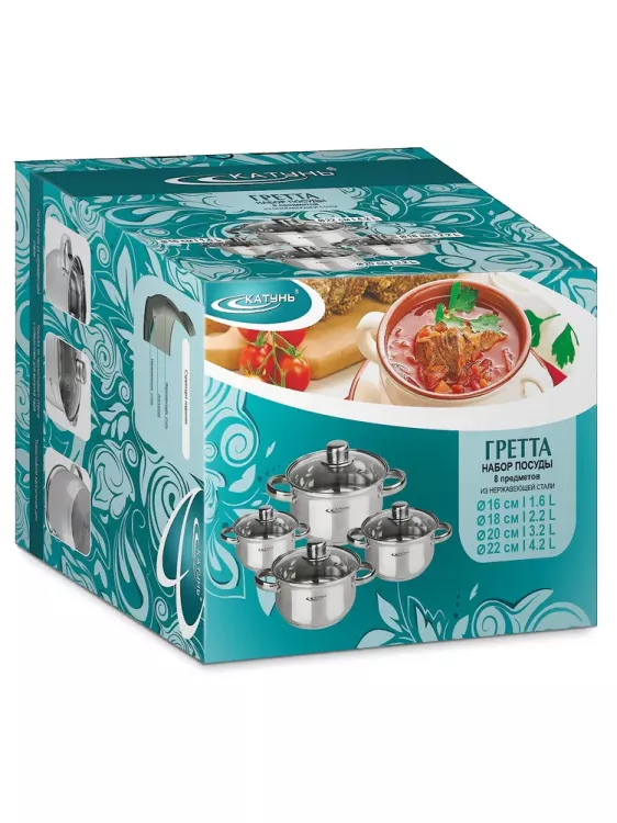 "Гретта" Набор кастрюль 8пр. (1,6+2,2+3,2+4,2л)
