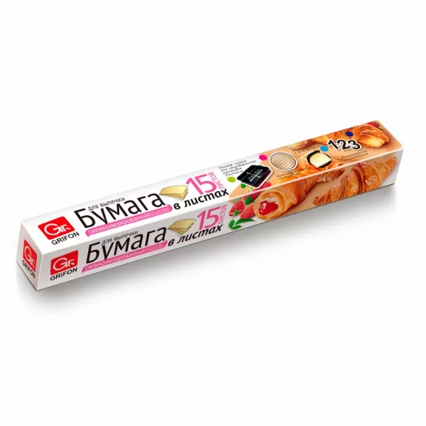 "GRIFON" Бумага для выпечки силиконизированная 38х42см, 15листов, с тиснением