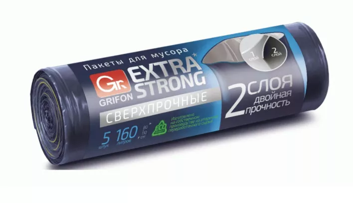 "GRIFON" Мешки для мусора особопроч. двухслойные "EXTRA STRONG" ПВД 160л, 5шт. 45мкм