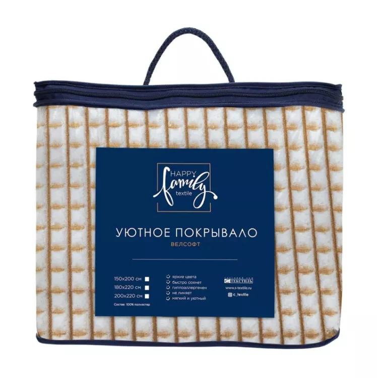"Happy Family" Покрывало "Каре" 200х220см, цв.бежевый