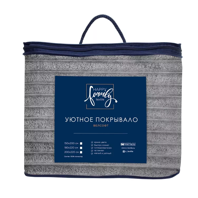 "Happy Family" Покрывало "Волна" 150х200см,цв.серый