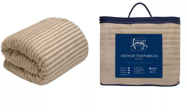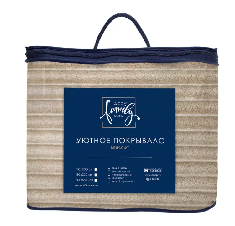 "Happy Family" Покрывало "Волна" 180х220см,цв.песочный