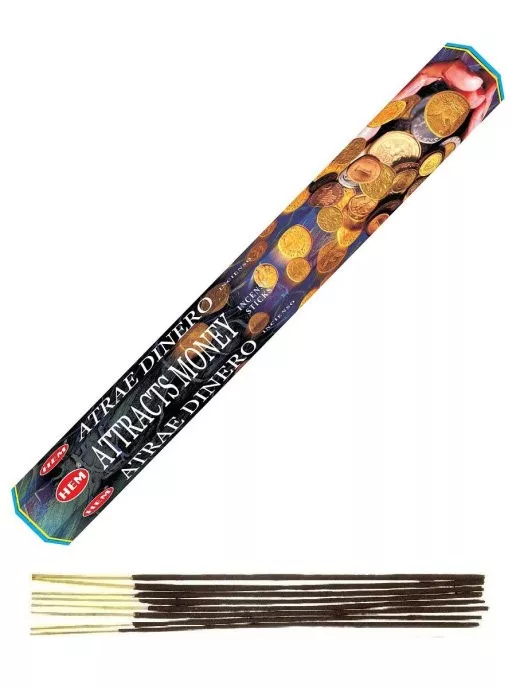Благовоние HEM Attract Money (Привлекающие деньги) стимулирует энергетический поток, направленный на привлечение материального и финансового достатка.