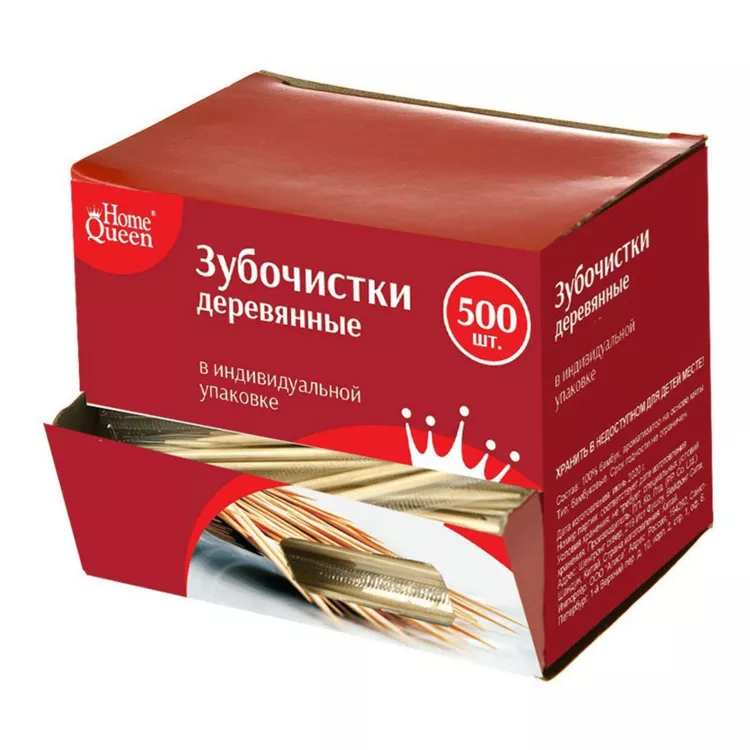 "Home Queen" Зубочистки в индивидуальной упаковке, 500шт.