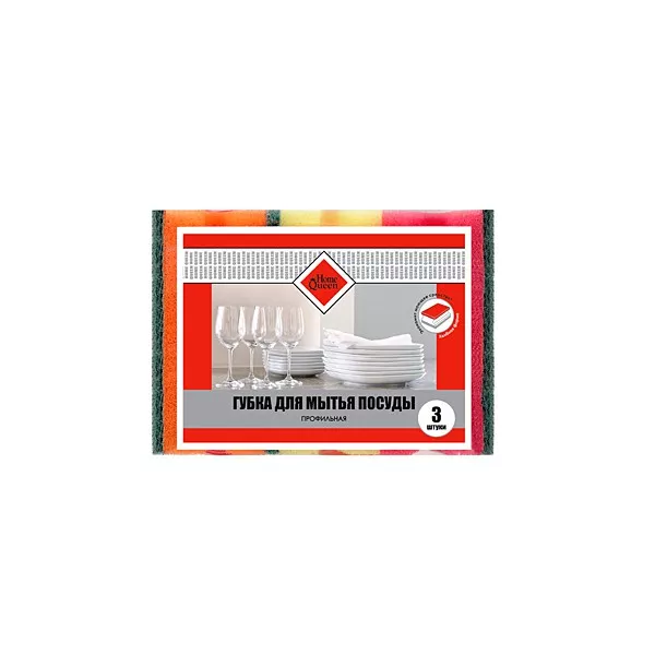 "HomeQueen" Набор губок для посуды "Профиль" 3шт, 8,6х6,5х3,9см