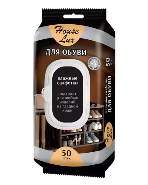 "House Lux" Влажные салфетки для обуви из гладкой кожи 50шт.